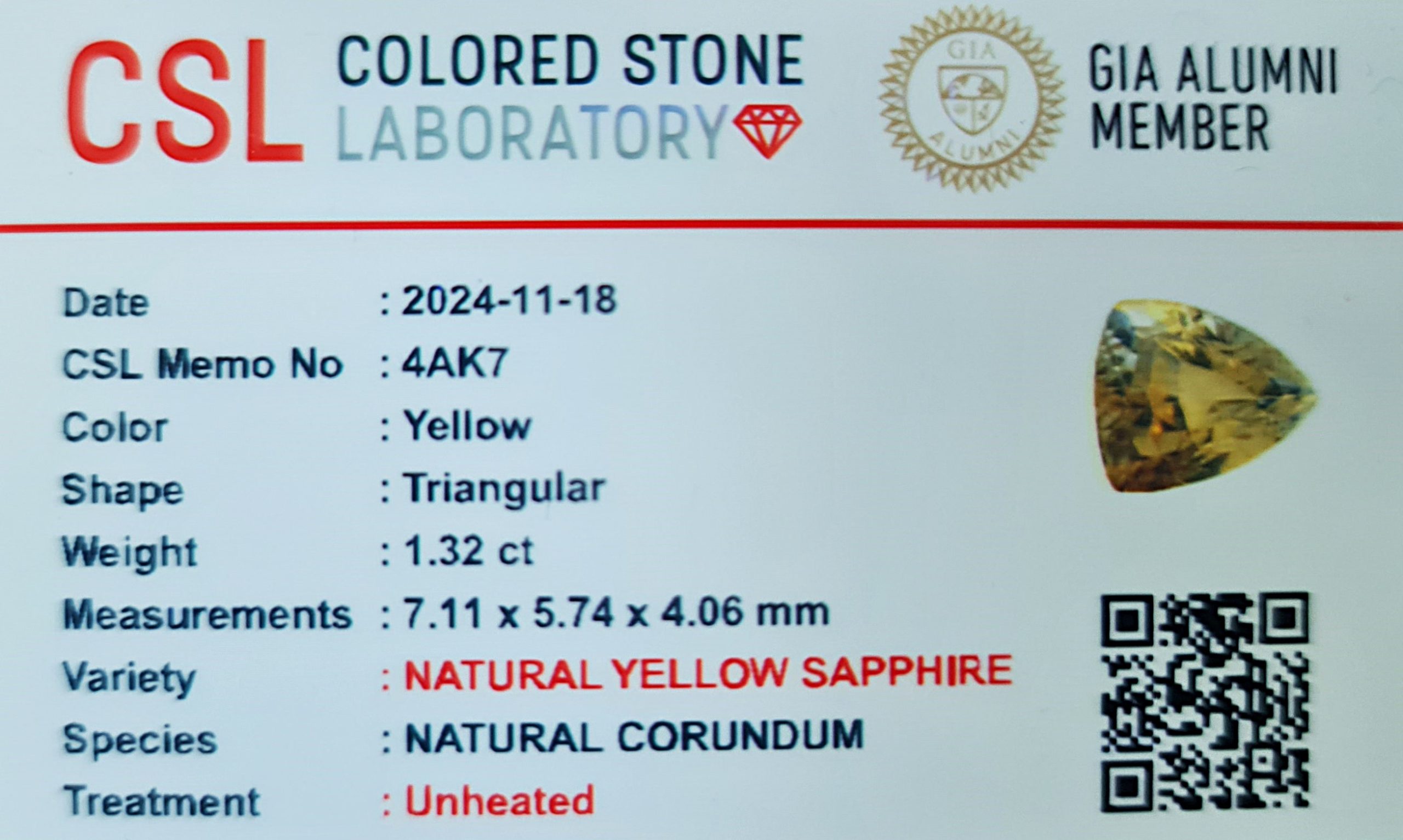 Every gemstones on our website is certified for quality and authenticity. This triangular gemstone comes with a report from GIA, ensuring its natural origins and quality. We are also certified by the National Gem and Jewellery Authority.